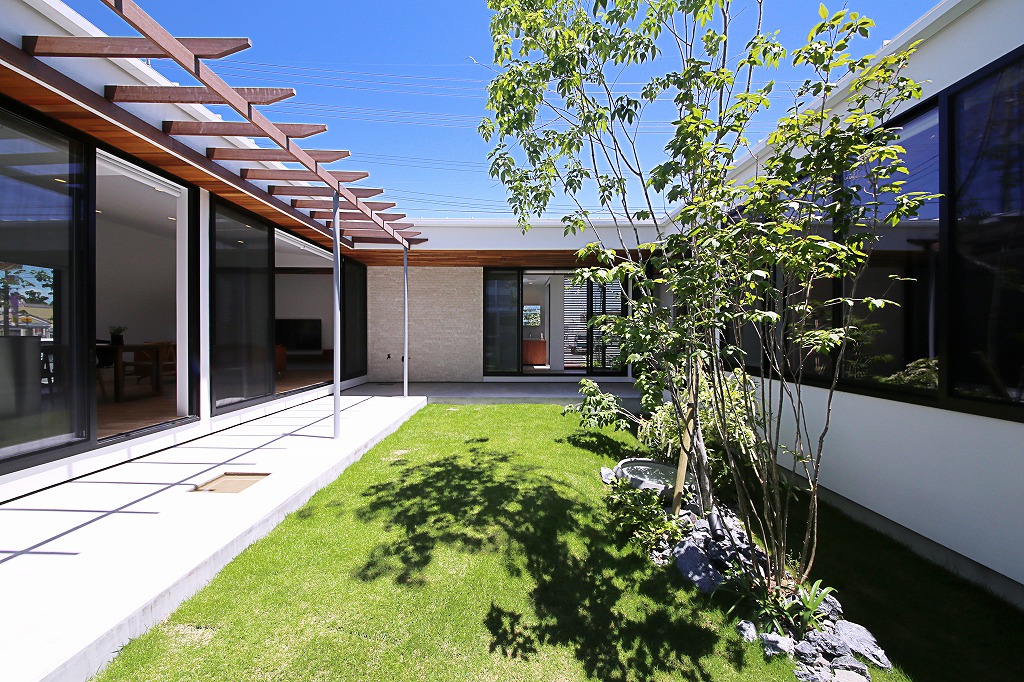ご提案するのは、浜松市西区志都呂のモデルハウスで実際に体感いただける「中庭を囲うコの字の平屋」です。