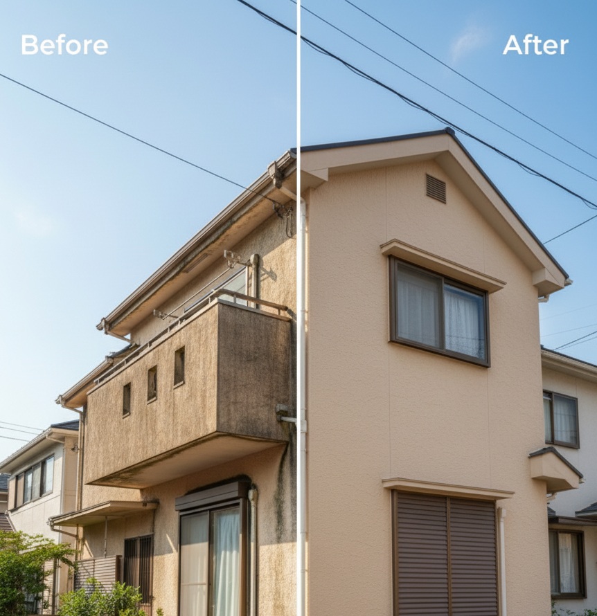 外壁塗装を行うと、新築時のような美しい外観を取り戻せ、今までと違った塗装にすることで、イメージを変えることもできます。